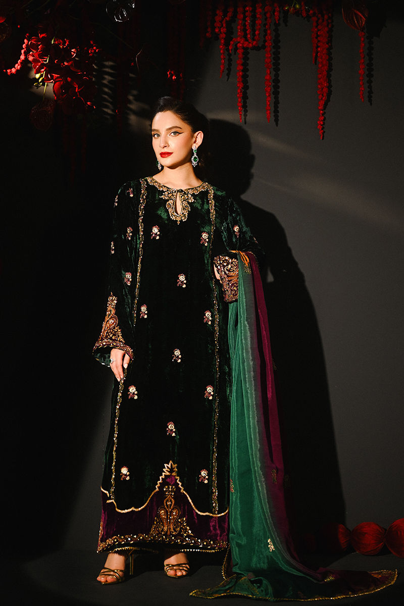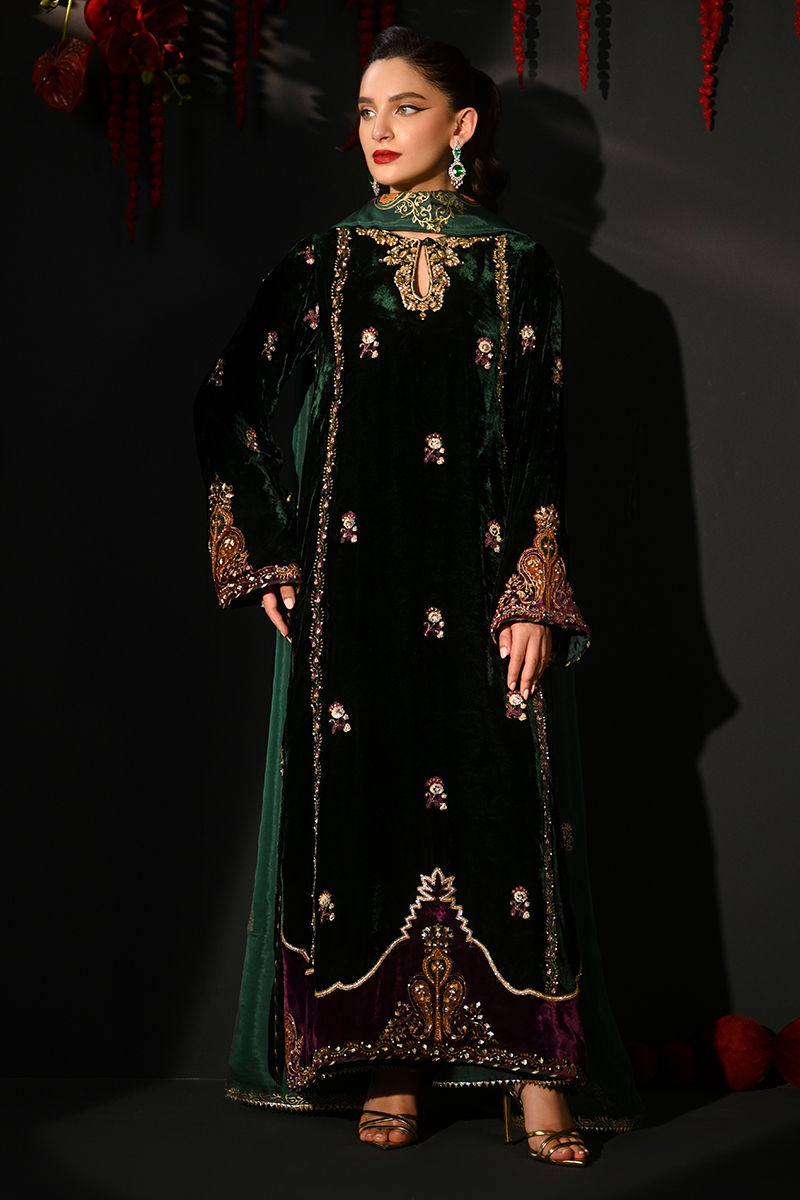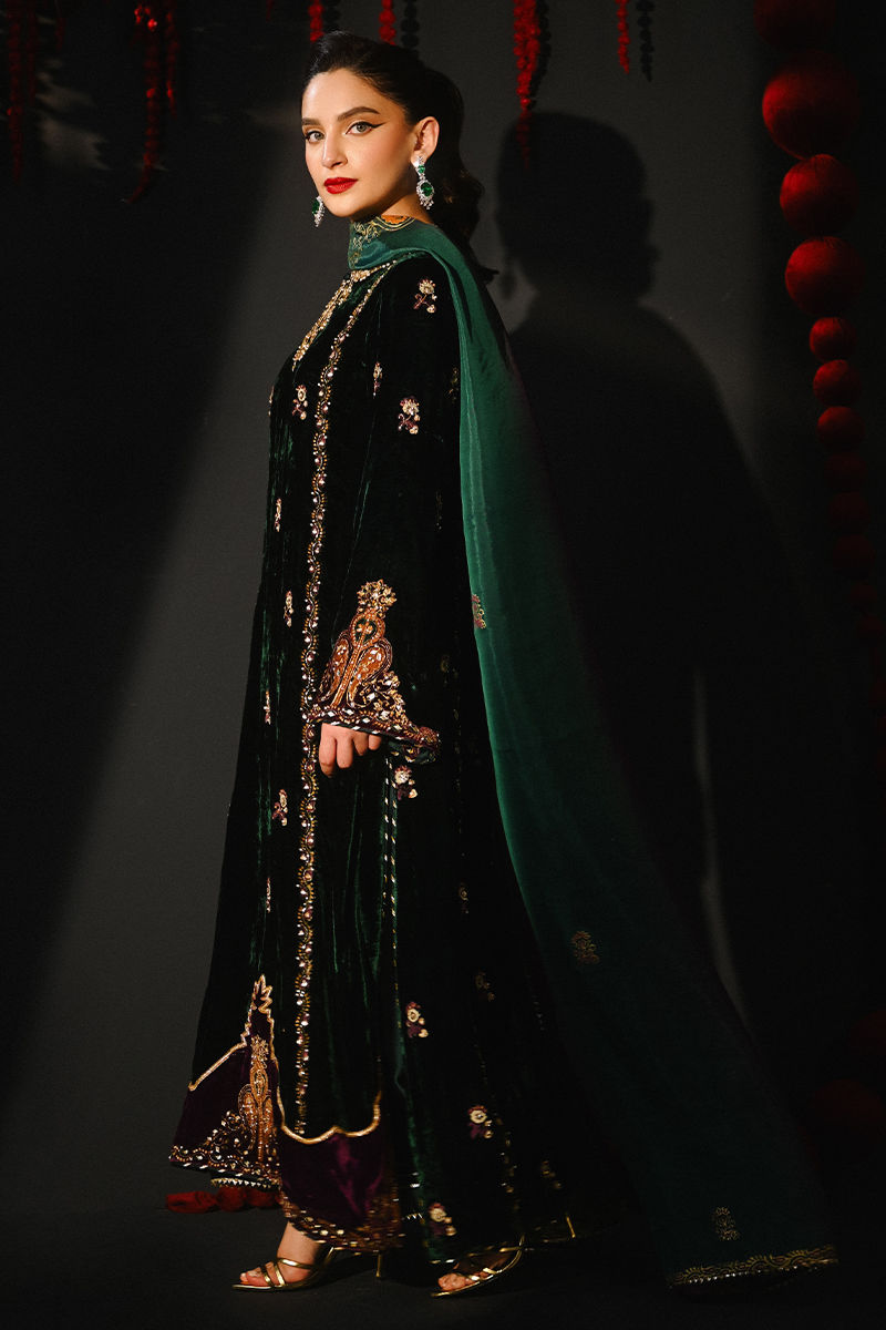 Color: Emerald Green and Purple Fabric: Velvet Work Details: Embellished